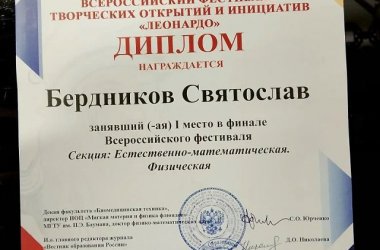 Поздравляем победителей Всероссийского фестиваля «Леонардо»!